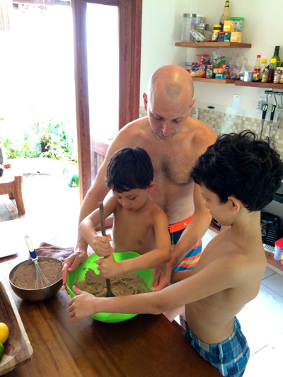 Barry has found a way to satisfy his baking needs. Using measuring cups and spoons brought from the US and literally mixing the ingredients by hand with the help of two helper-elves, Bare-Chested Bakery was born. “Biscoitos Americanos” became a favorite of our neighbors who were paid with chocolate chip cookies or double chocolate chip cookies for their kindness and generosity.