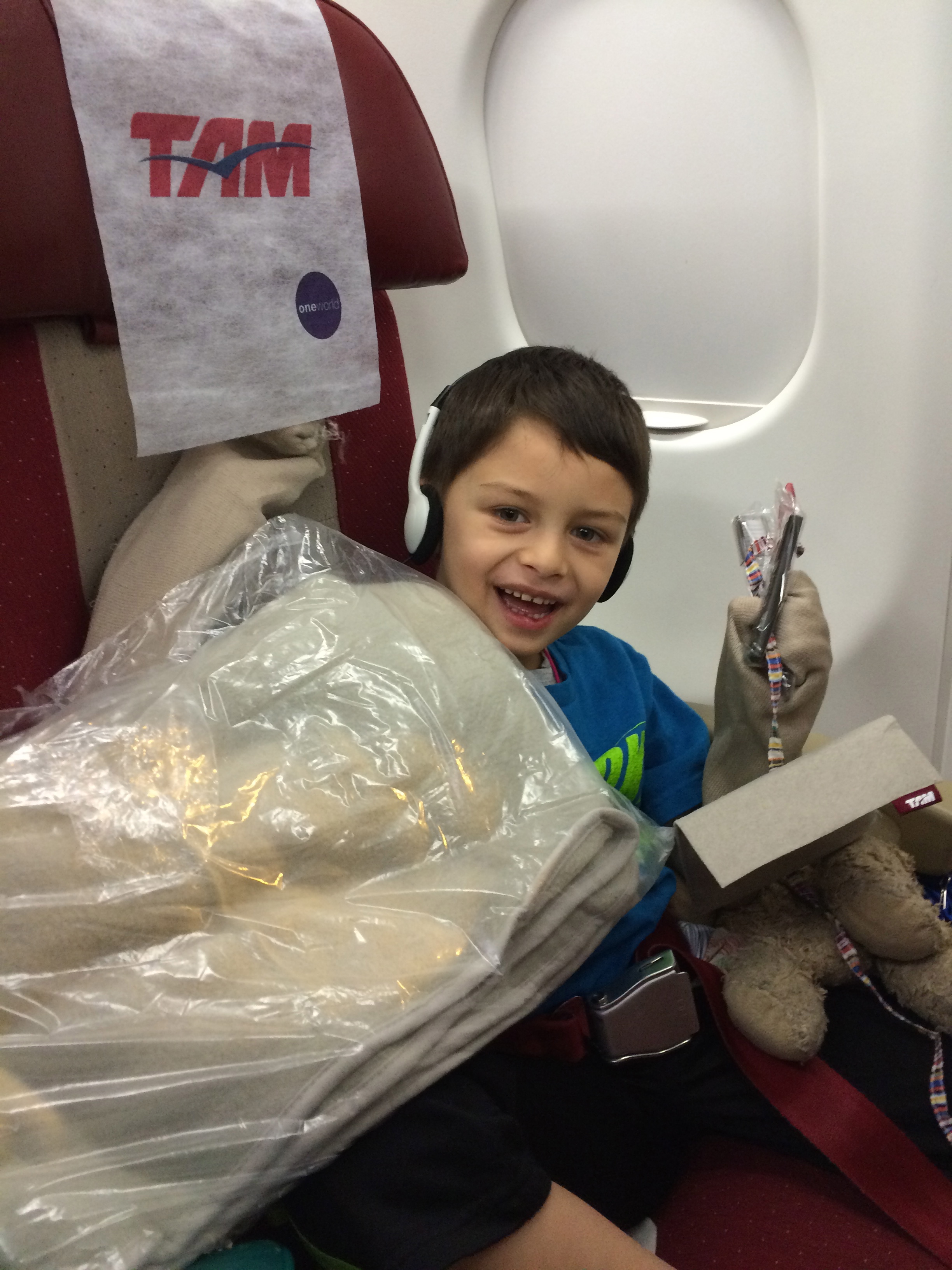 The flight attendant on TAM (Brazil’s national airlines) for being patient with our Portuguese and letting us practice. Barry and I were thrilled to communicate successfully in our first conversation en Portugues. He was also very sweet with Ezra, who requested extra candy as he ate his brownie first when dinner was served. We had a great experience on TAM—clean, friendly service, professional staff, roomy seats with individual screens and extensive library of movies to select from; we were all ecstatic! Despite the fact that Ezra (and I) did not sleep well on the overnight flight we give TAM a thumbs up (Brazilian caramels upon seating goes a long way)!
